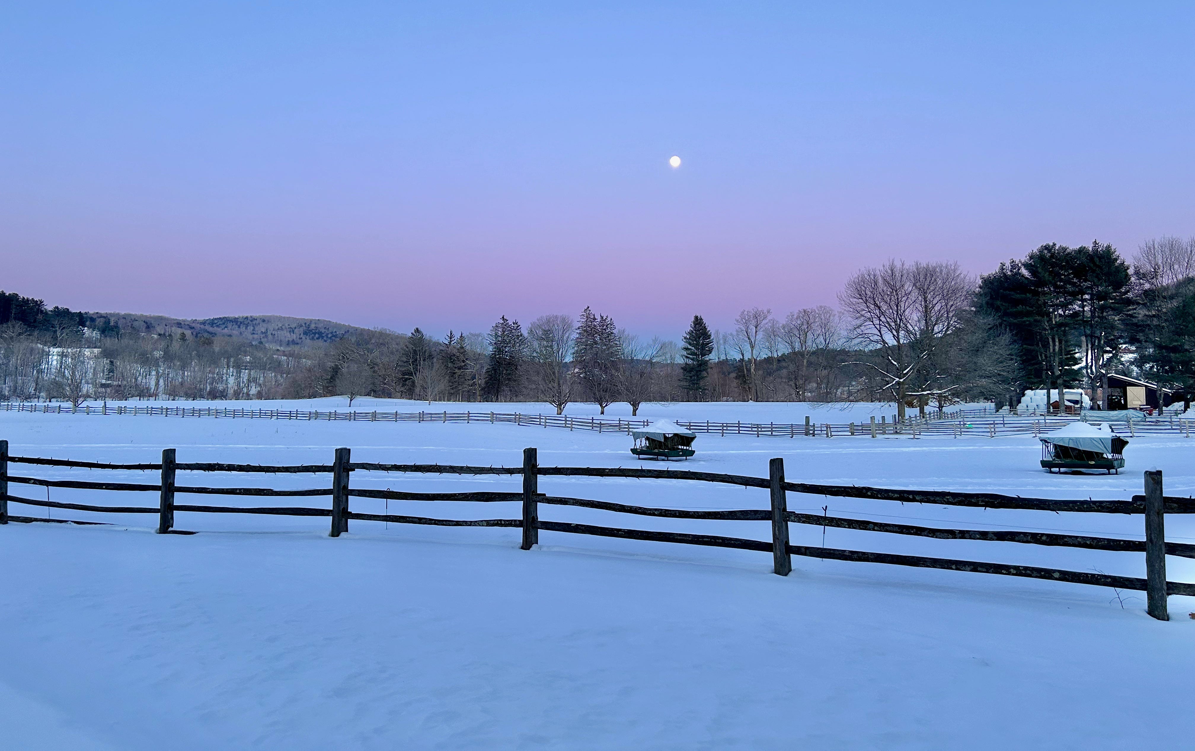 As we came out of the building, there was a beautiful full moon over a pinkish winter dusk.