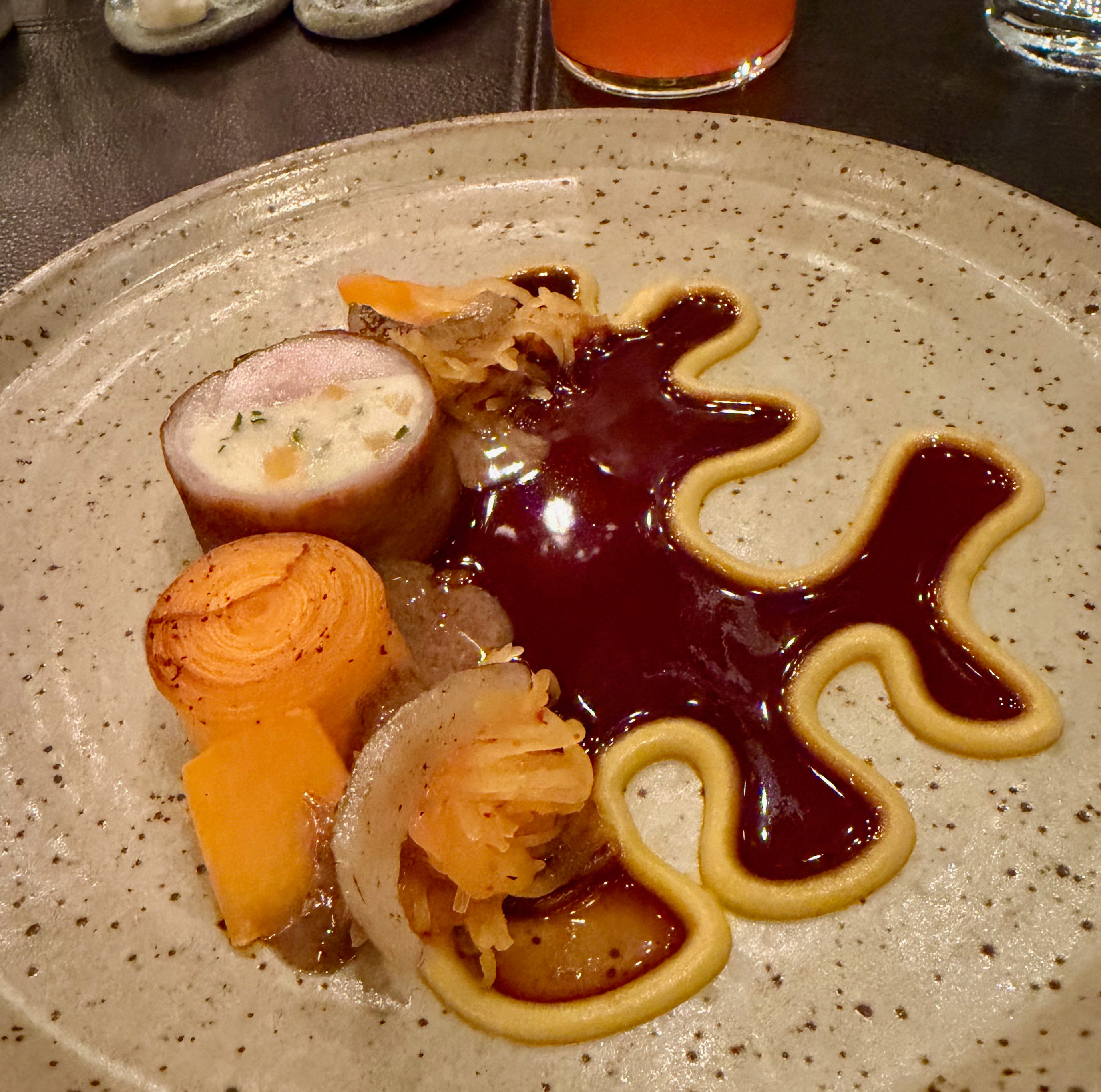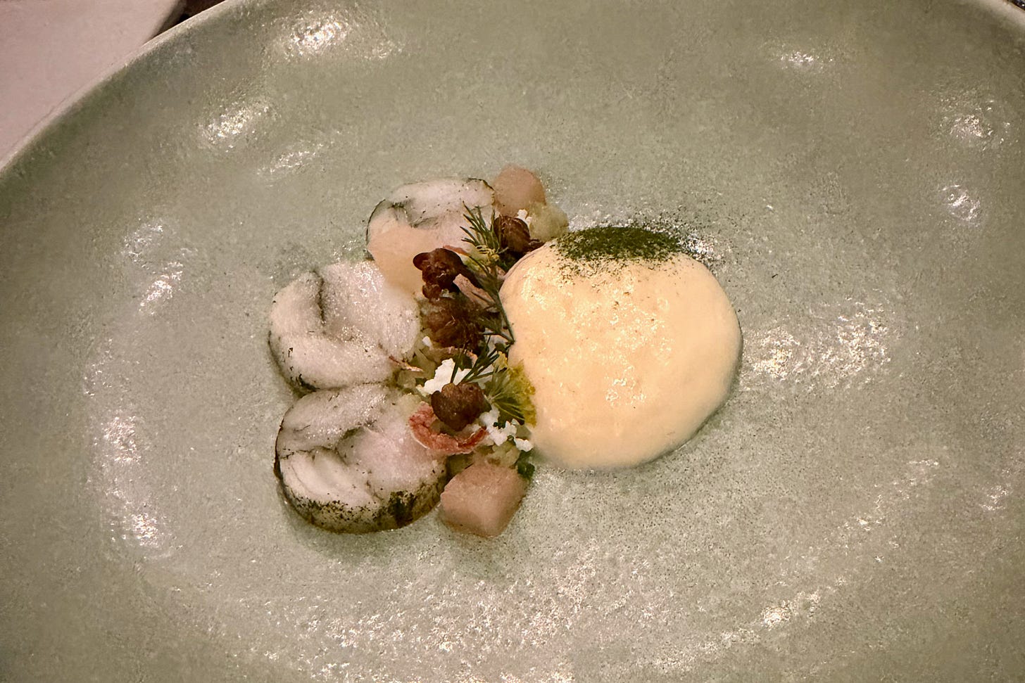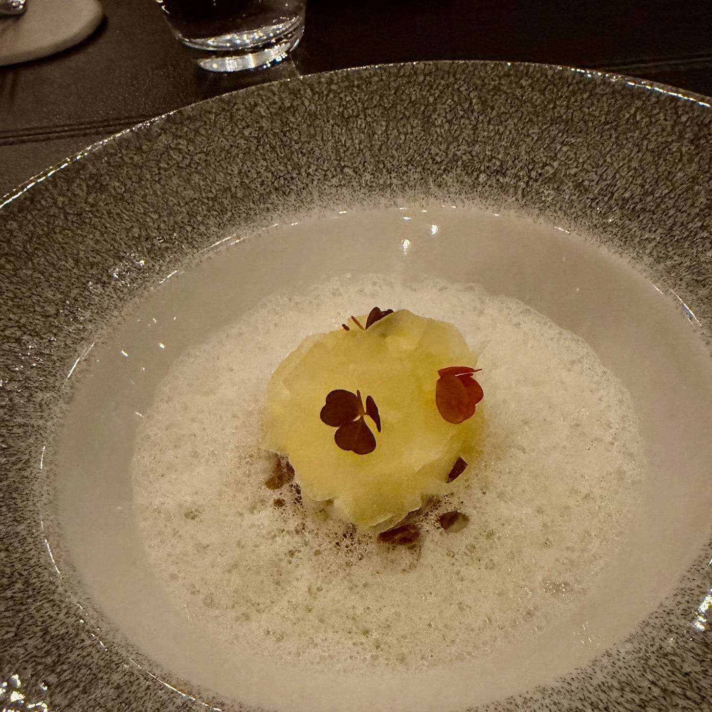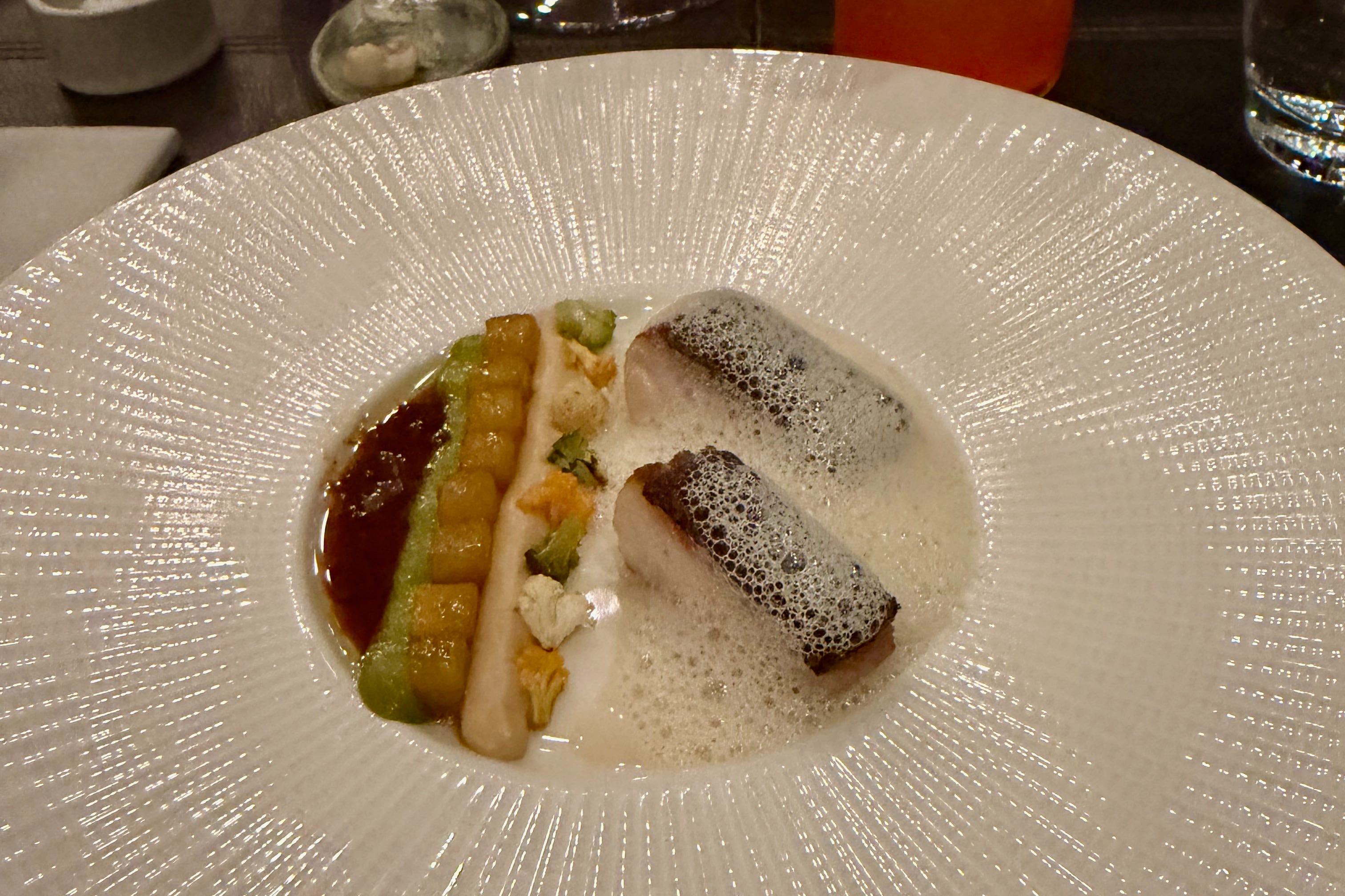 I don’t remember what this is, but I think it was some kind of fish. The inclusion of multiple interesting accompaniments and foam will become a recurring theme.