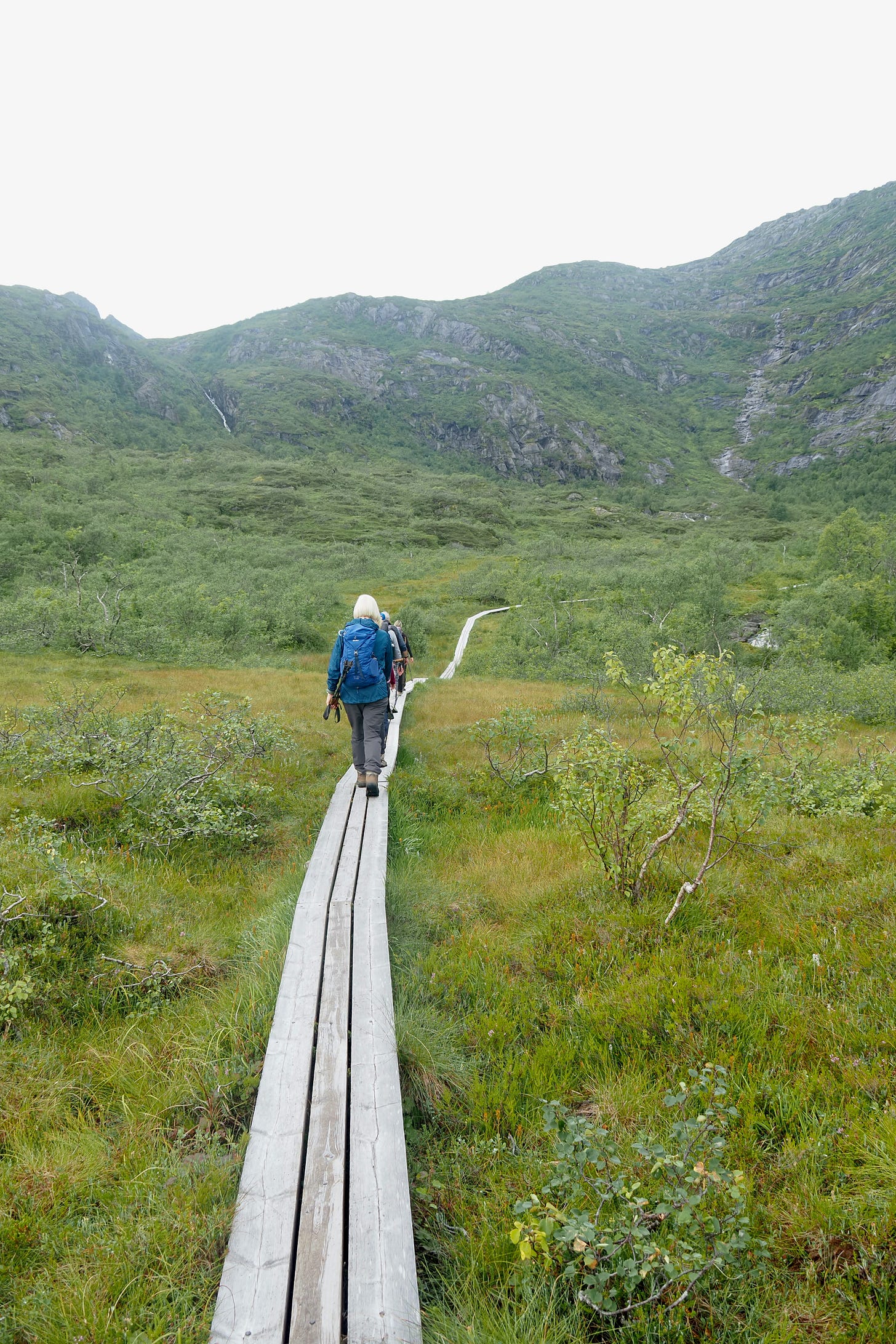 The long version of the Svolvaer Lake hike was listed in our materials as being 11 kilometers long, with an elevation gain of 295 meters. Kilometers? Meters? For me, this was like shopping when the prices are all in Norwegian kroner. I figured it would become clear in retrospect whether or not those are big numbers.