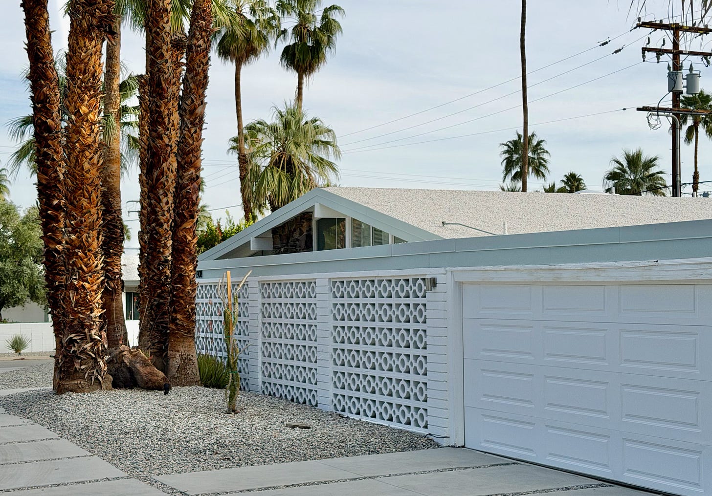 The windows on the front and sides of the house run just under the roofline. They’re rectangular if you have a flat roof or wedge-shaped if you have a gabled or butterfly roof. You can’t see the street or your neighbors through those high windows, but you can see the palm trees and the mountains and they let in a lot of light.