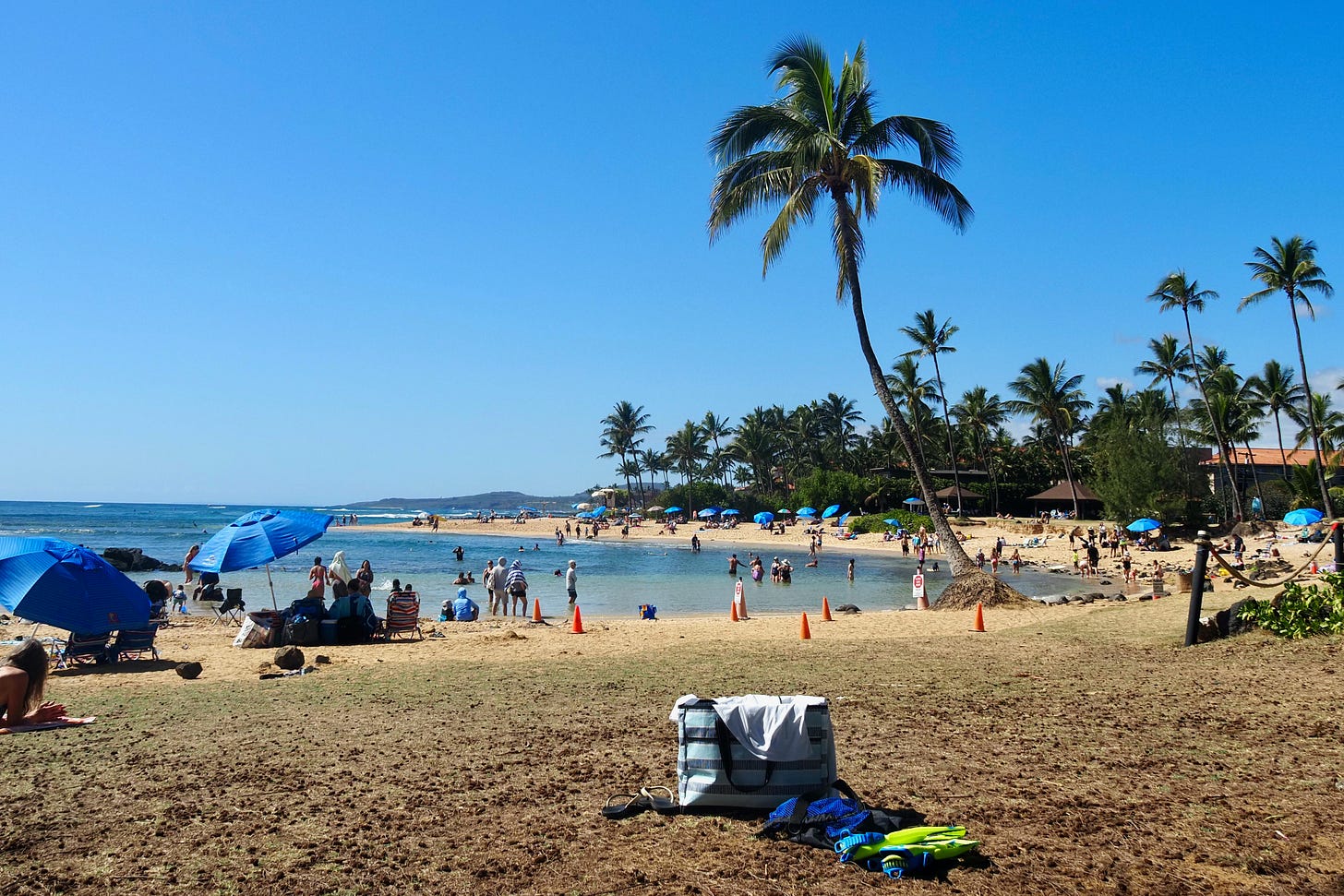 While we were in Hawaii, we went to one beach or another pretty much every day and saw a lot of people wearing bathing suits. We saw people in thousands of combinations of ages, shapes, sizes, and colors and we saw them wearing maybe a few dozen bathing suit styles. Men in particular have an almost uniform consensus that their bathing suit should be shaped like long, loose-fitting shorts, ending a bit above the knee. It doesn’t matter if you’re tall or short, if you have a six-pack or a beer belly, that’s the suit we men all wear. In two weeks of beach visits, I saw one man wearing a small Speedo-style suit, and it was such a surprising sight that I did a double-take. Did I just see that?