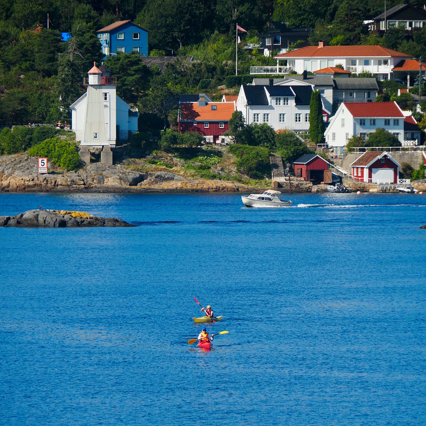 Finally and a surprise to me, it also comes with a motorboat, which enables us to boat our way to the town of Arendal and back.
